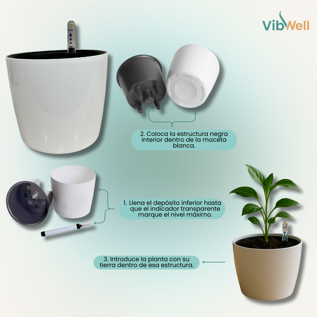 Maceta de Autorriego con Indicador de Agua