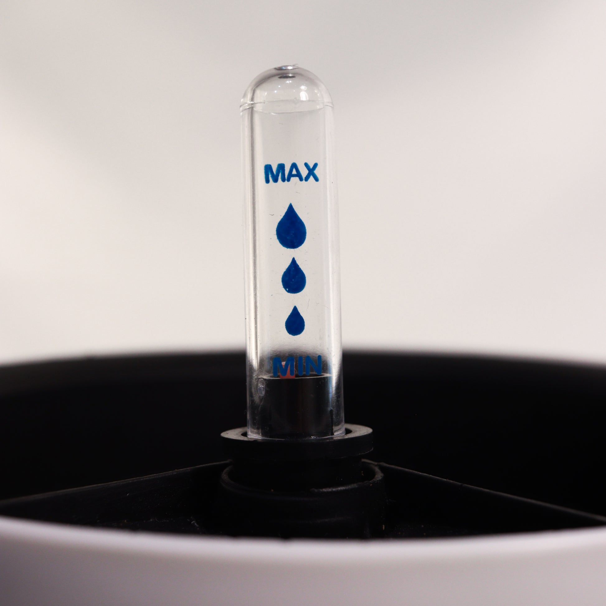 1. Llena el depósito inferior hasta que el indicador transparente marque el nivel máximo.